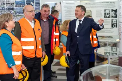 Н. Пр. Кенет Мертен видя американското оборудване на компанията и разгледа трезора на златното съкровище Посланикът на Съединените американски щати в България Н. Пр. Кенет…