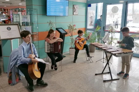 Във фоайето на МБАЛ „Уни Хоспитал“ камерен концерт с поздрав към всички работещи в сферата на здравеопазването по повод професионалния им празник – 7 април…
